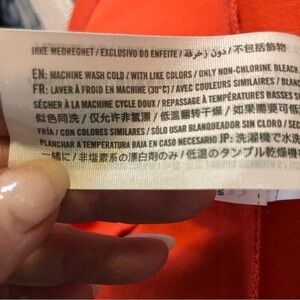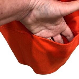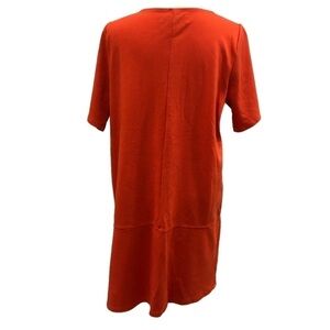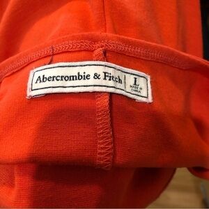 Abercrombie & Fitch short sleeve shift dress with two front pockets. Red/orange. Front keyhole neck has slide and lock closure. Pre-owned with minimal signs of normal wear and maintenance. No stains or holes. Minimal pilling. Size L.