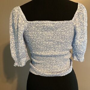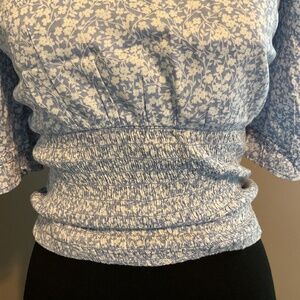Excellent condition Abercrombie and Fitch size small crop top. Color is a baby blue and white. Elastic waistband.