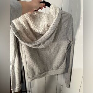 Size small. Grey zip up Sherpa material on inside. Great condition
