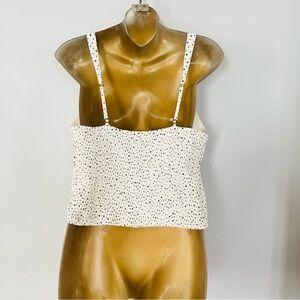 Chic and stylish white polka dot top perfect for any occasion. Lightweight and comfortable for all-day wear