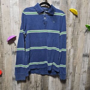 Abercrombie and Fitch Vintage Y2K Navy Stripe Muscle Polo LS