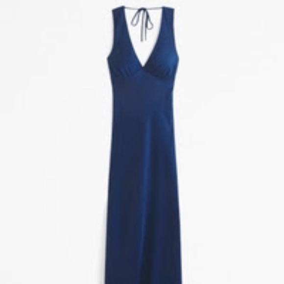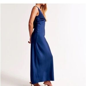 Abercrombie cowl back plunge satin maxi dress blue