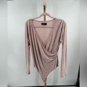 Abercrombie cozy brushed fleece texture long sleeve pink wrap front bodysuit XL