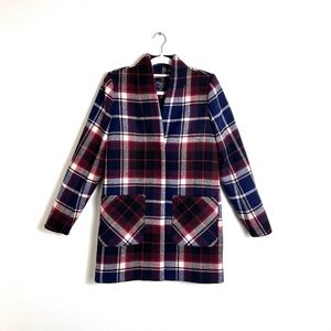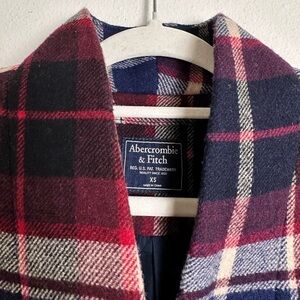 Abercrombie fitch blue red plaid wool blend long coat jacket XS