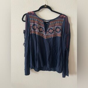 Abercrombie & fitch navy blue long sleeve top with Aztec print