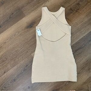 Abercrombie & fitch womens tan scuba ribbed criss cross dress // the dress us a brown/ tan. The stock photo is blue but just to show how it fits