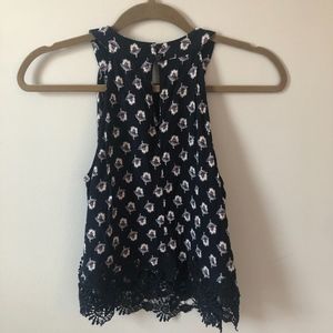 Lace trim at botton, with high neck. Very comfortable, worn a few times.