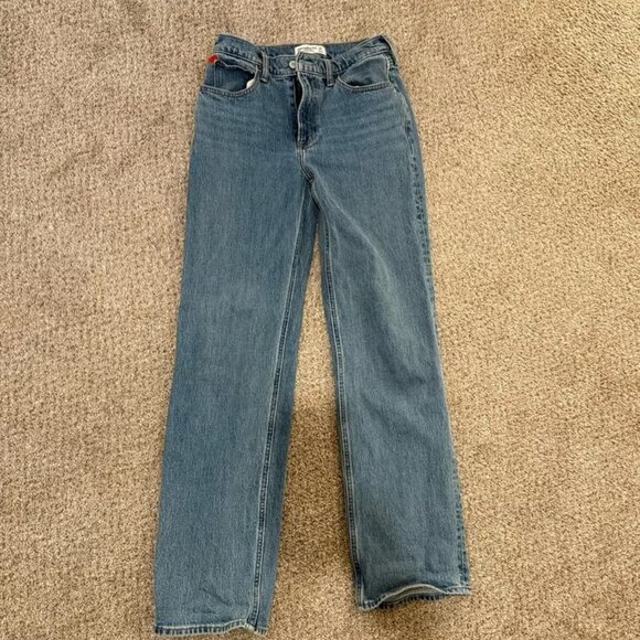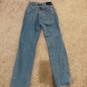 High rise 90s relaxed jeans size 26. Only worn once. Heart embroider detail on pockets.