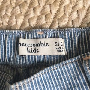 This is a pair of jean shorts from Abercrombie kids. They are a size 5/6 in girls, they also have an elastic back waist band.