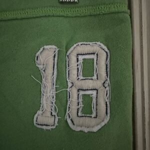 Abercrombie kids bright green mid weight sweat shorts XL. Drawstring wasit with ribbon tie and a metal logo button on the tie. Fleece lining with sewn cuffs Longer length, White logo text and stitched on A on front of shorts. Excellent condition with no rips stains or tears. Worn maybe once