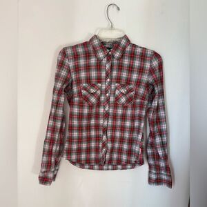 Abercrombie red plaid snap front long sleeve top size small 95 % cotton