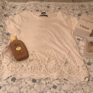 Abercrombie top. NWOT (never worn). Lace bottom, really sweet. 100% cotton.