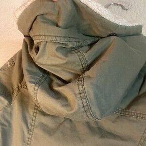 Abercrombie trench hoodie jacket utility cargo sherpa XL army green Y2K 90s