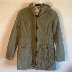 Super thick and warm ! Abercrombie and fitch kids army green zipper hoodie, jacket with buttons and lots of moto utility cargo pockets.