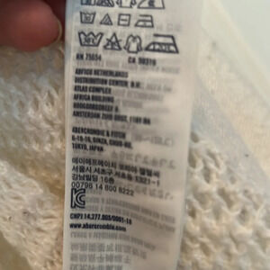 This is an Abercrombie white sweater in a size medium. It can be machine washed cold. It’s 56% cotton 13% polyester and 31% acrylic.