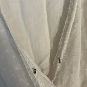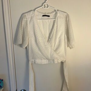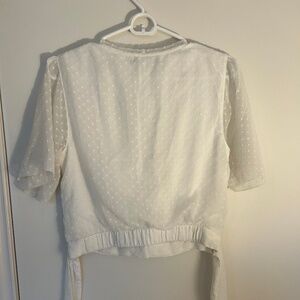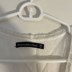 Abercrombie white blouse. Has a clasp and a tie on the bottom. polka dot pattern.