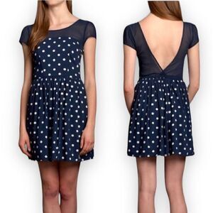 Abercrombie & Fitch Navy White Polka Dot Open Back Fit & Flare Dress Size Medium