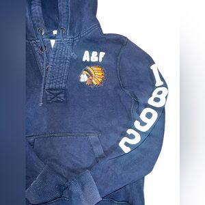 VINTAGE Abercrombie&Fitch RED INDIAN PATCHWORK HOODIE SIZE LARGE men’s muscle. Bought new, so cool! Non smoking home. Navy.