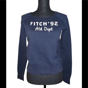 Navy blue crewneck sweatshirt. Long sleeve. “Fitch ‘92 Ath Dept” on front. 60% cotton/40% polyester. Size: XS. Preowned in good condition.