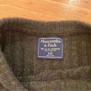 Abercrombie & Fitch Vintage dark green/white stripe sweater. 70% acrylic, 27% nylon, 3% elastane. Armpit to armpit 19 inches. Length 23 inches. Size XXS. Some light pilling but still good condition!