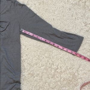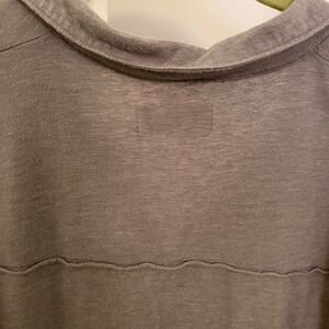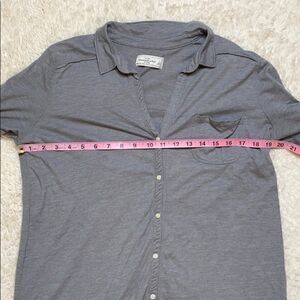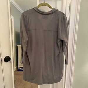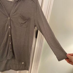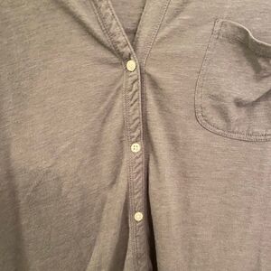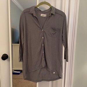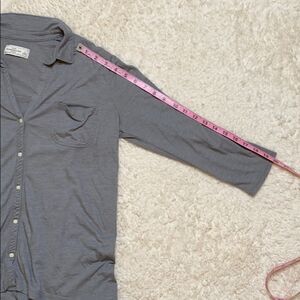 M button down with collar, very soft, 3/4 sleeve, some signs of wear where fabric may rub together but overall very good condition