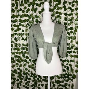 Abercrombie and Fitch Long Sleeve Linen Crop Top