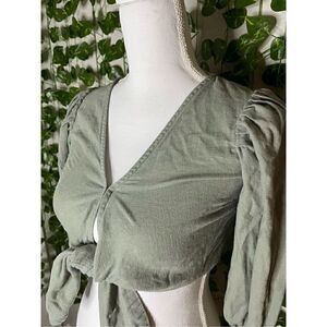 Abercrombie and Fitch Long Sleeve Linen Crop Top