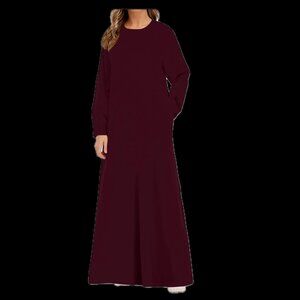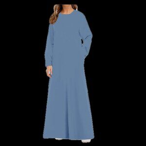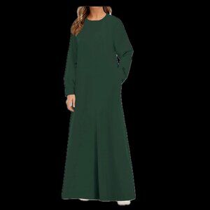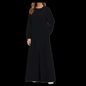 Abetteric Women Solid Color Zipper Abaya Muslim Dress w/ Pockets Islamic Prayer Clothes