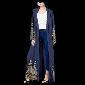 Abetteric Women's Navy Kaftan Muslim Abaya Open Cardigan Dress Islamic Dubai Arab Ramadan CAN RUN SMALL