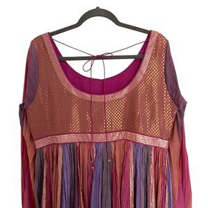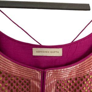 Abhishek Gupta M Pink Handmade Indian Anarkali Dress Dupatta Gold Accents Flowy
