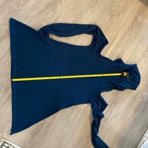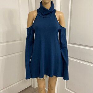 Abi Ferrin Cold Shoulder Tunic Top. Blue. Small. Turtleneck. Long Sleeve. Tunic. 96% Polyester, 4% Spandex. Dry Clean or Gentle Machine Wash.