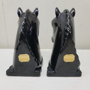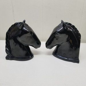 Abingdon USA Black Horse Head Book Ends Home Decor Glossy Glaze