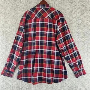 Ablanche Red Plaid Button Down Long sleeve Casual Men's Shirt 4XL
