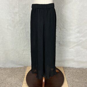 This is a black, pleated, chiffon, lined midi skirt from Able. Pull on, lined, a-line. 100% recycled polyester. NWT, bnwt, brand new with tags. No flaws. For reference the mannequin is a size 6-8 with measurements of: 34 in 26 in 35 in.