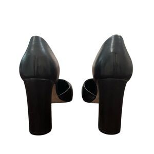Step into sophistication with Able's black 4 inch block heels, featuring a sleek pointed toe and a timeless d'Orsay design. These elegant shoes are crafted from high-quality leather, offering a smooth and polished finish perfect for any formal occasion.
