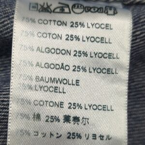 Classic blue jean jacket. Button-up front. Two chest pockets. Durable denim material.