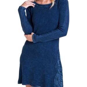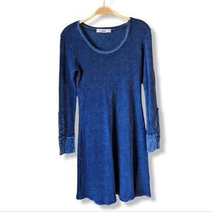 Able Blue Thermal and Crochet Lace Long Sleeve Mineral Wash Dress S