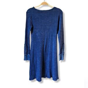 Able Blue Thermal and Waffle Knit Pullover Mineral Wash Crotchet Dress Sz S