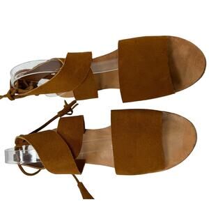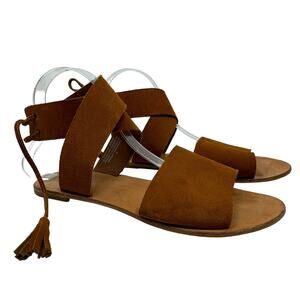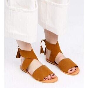 Able Cruz Utility Sandal in Cognac Tan Brown Suede Leather Tie Ankle 9