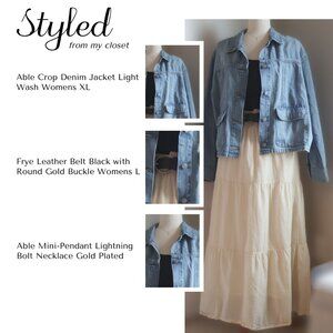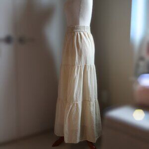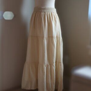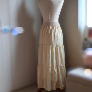 Able Harper Tiered Maxi Skirt Tan/White Pinstripe Womens L Boho Festival
