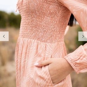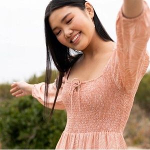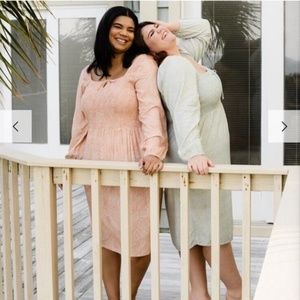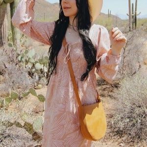 Able Joyce Midi Dress Women's Size XSmall Smocked Bodice Blush Pink Long Sleeve