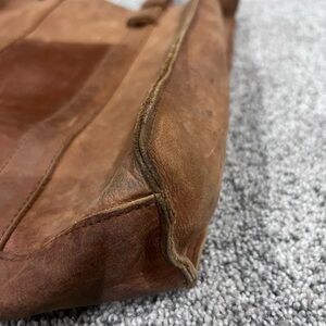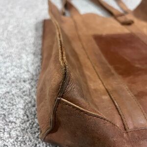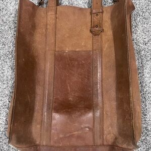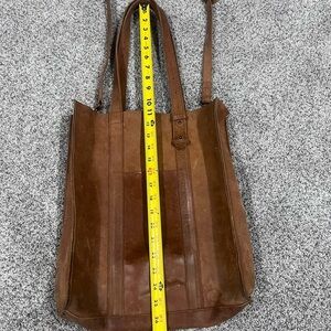 Able Local + Global Brown Genuine Leather North South Tote Bag With Long Strap