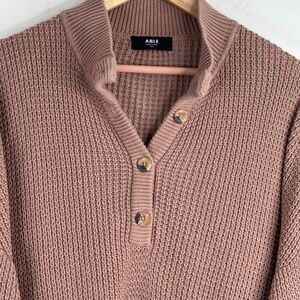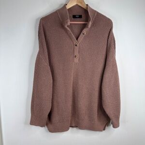 Able Marin Sweater XXL Mushroom Tan Organic Cotton Waffle Knit Mock Neck Slouchy