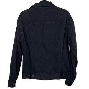 Easy fitting denim jacket with a slim arm, dropped shoulder, and a relaxed fit throughout the body