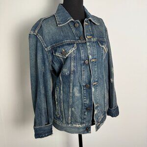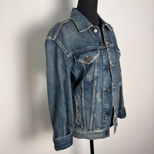 Able The Merly Denim Jacket Distressed Dark Wash Size Small