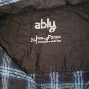 Ably Filium Activated Plaid Flannel Long Sleeve Button up Shirt Blue Black XL