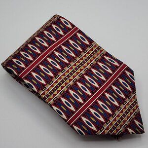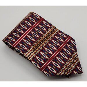 Classic Aboriginal Geometric Tie by Vivace in a stunning blend of red and blue. Extra long at 62.5", 4" wide, this vintage piece is perfect for any gender, and is made from 100% silk.