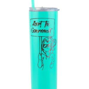 Abort the government Pro Choice tumbler with picket sign on front and the reproductive area giving the fingers on the other side.