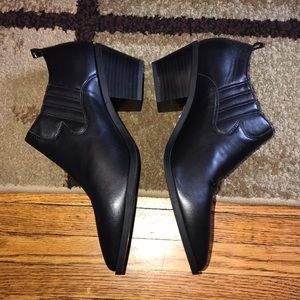 Beautiful New Short pointed toe ankle booties! Just in time for fall! Still has partial tag on bottom. There is residue from the stickers on the bottom.