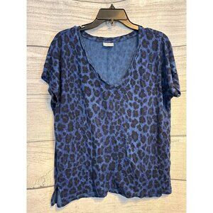 Abound Blue Leopard Print Short Sleeve V-Neck Top Size M